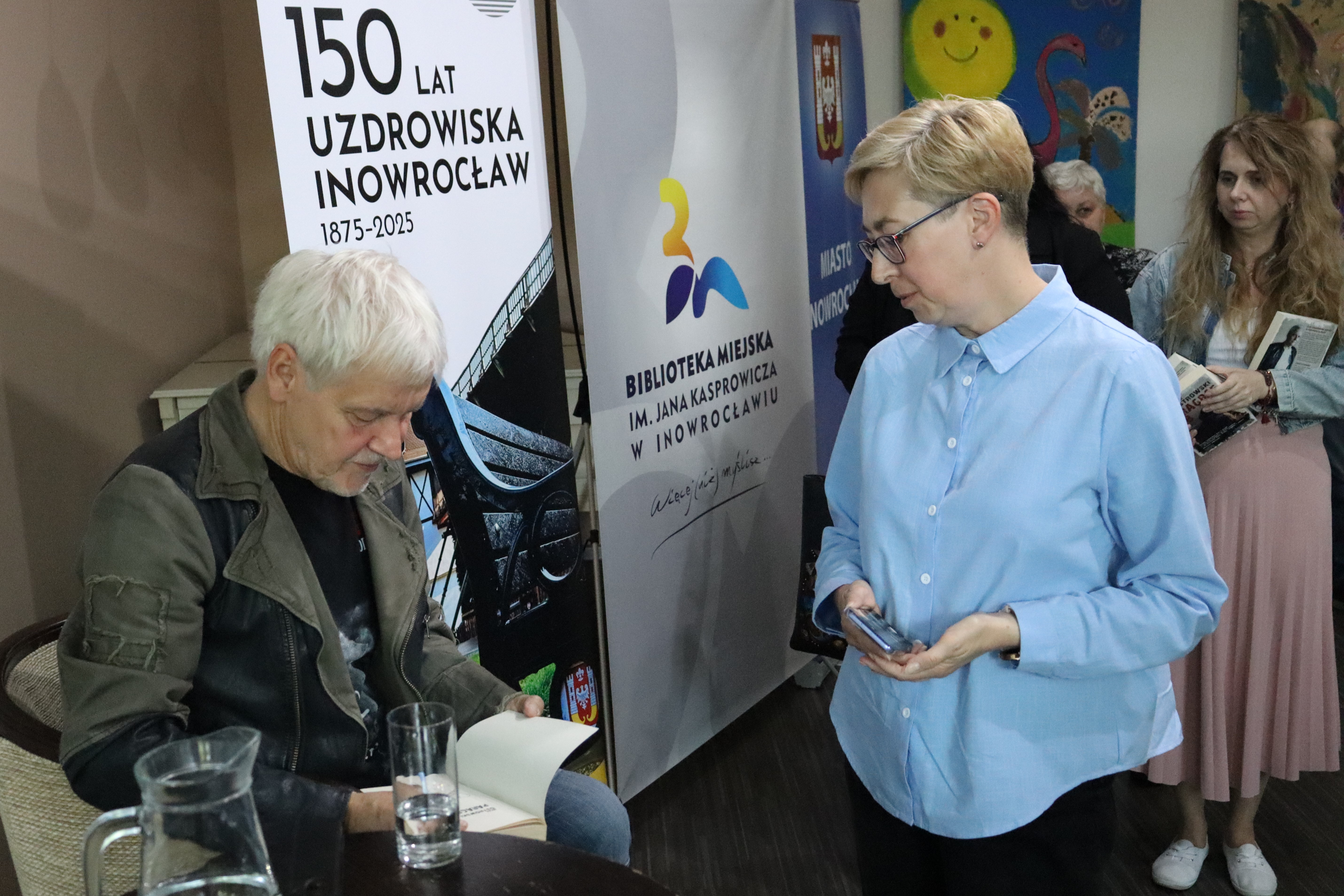 W czwartek 29 maja, do Biblioteki Miejskiej im. Jana Kasprowicza w Inowrocławiu przyjechał twórca popularnych powieści kryminalnych z Płocka, których akcja rozgrywa się w latach PRL-u. O starannych przygotowaniach do napisania każdej książki, wątkach autobiograficznych, różnych opiniach krytyków, sympatii czytelników, którą zyskali bohaterowie serii przygód mecenas Zuzanny Lewandowskiej (także milicjanci, pies i papuga), ze swadą opowiadał nasz gość. Chętnie też odpowiadał na pytania publiczności i wpisywał dedykacje autorskie.