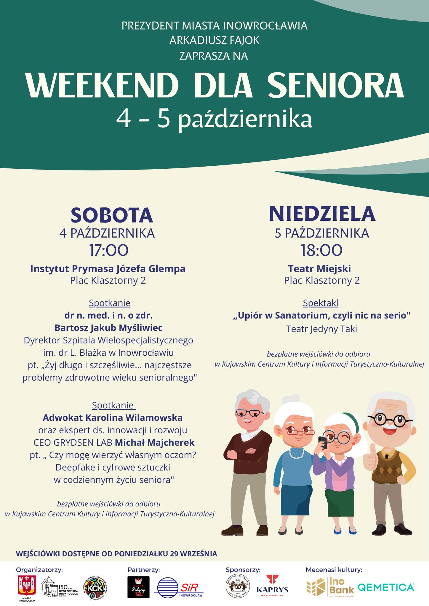Prezydent Miasta Inowrocławia Arkadiusz Fajok zaprasza mieszkańców na Weekend dla Seniora, który odbędzie się w dniach 4-5 października.